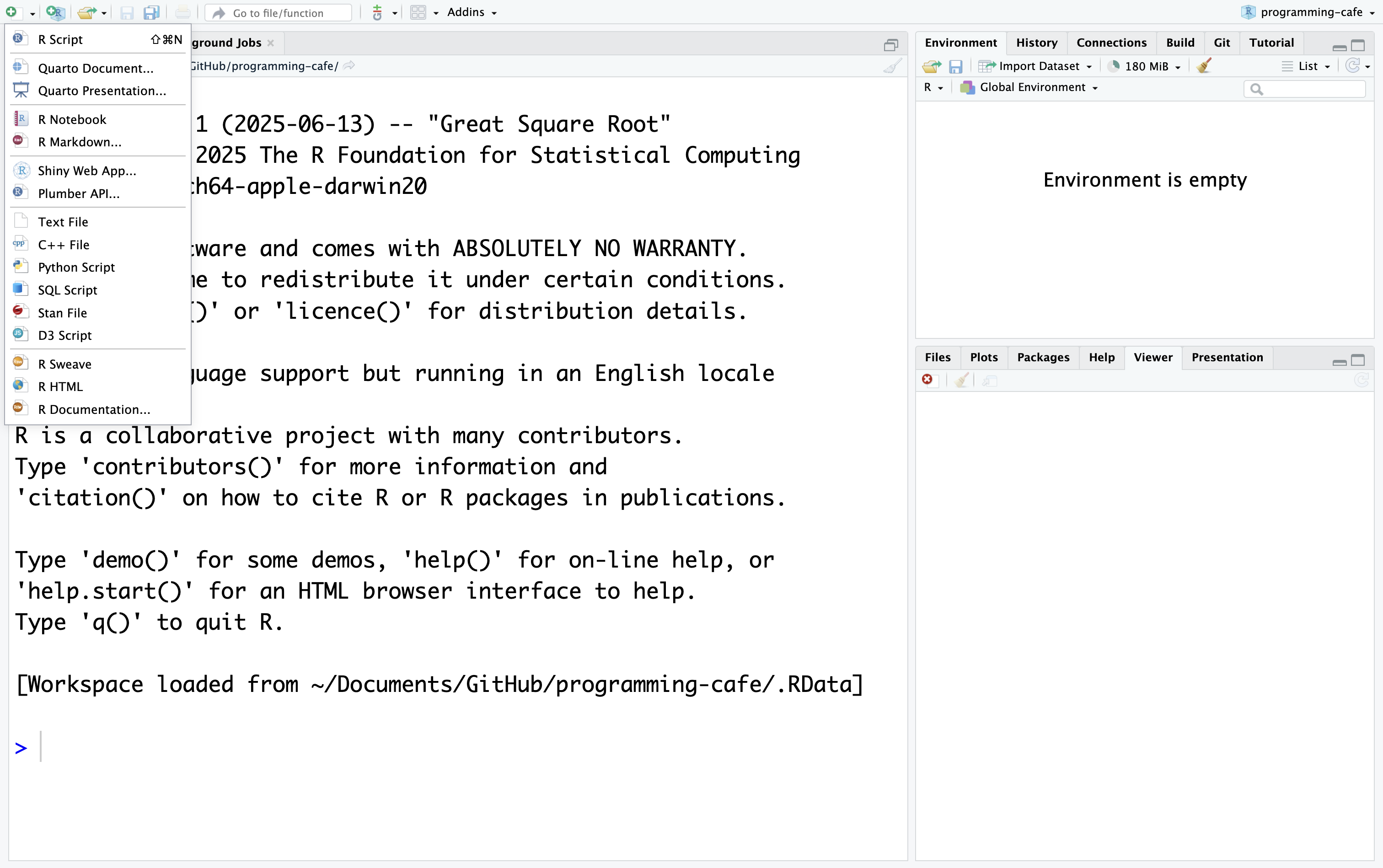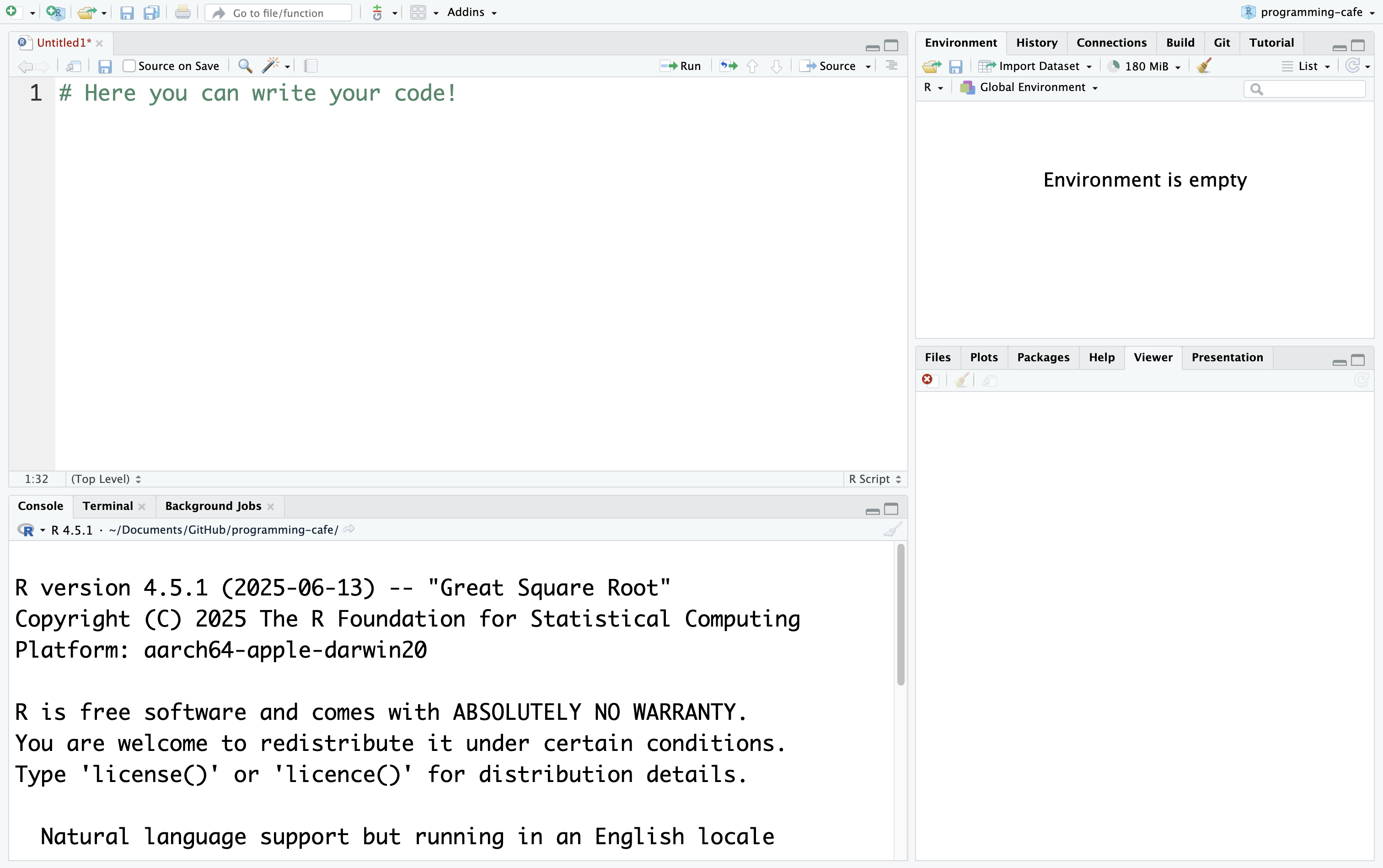 After that, you can click on the green plus in the upper left corner to create an empty .R script.