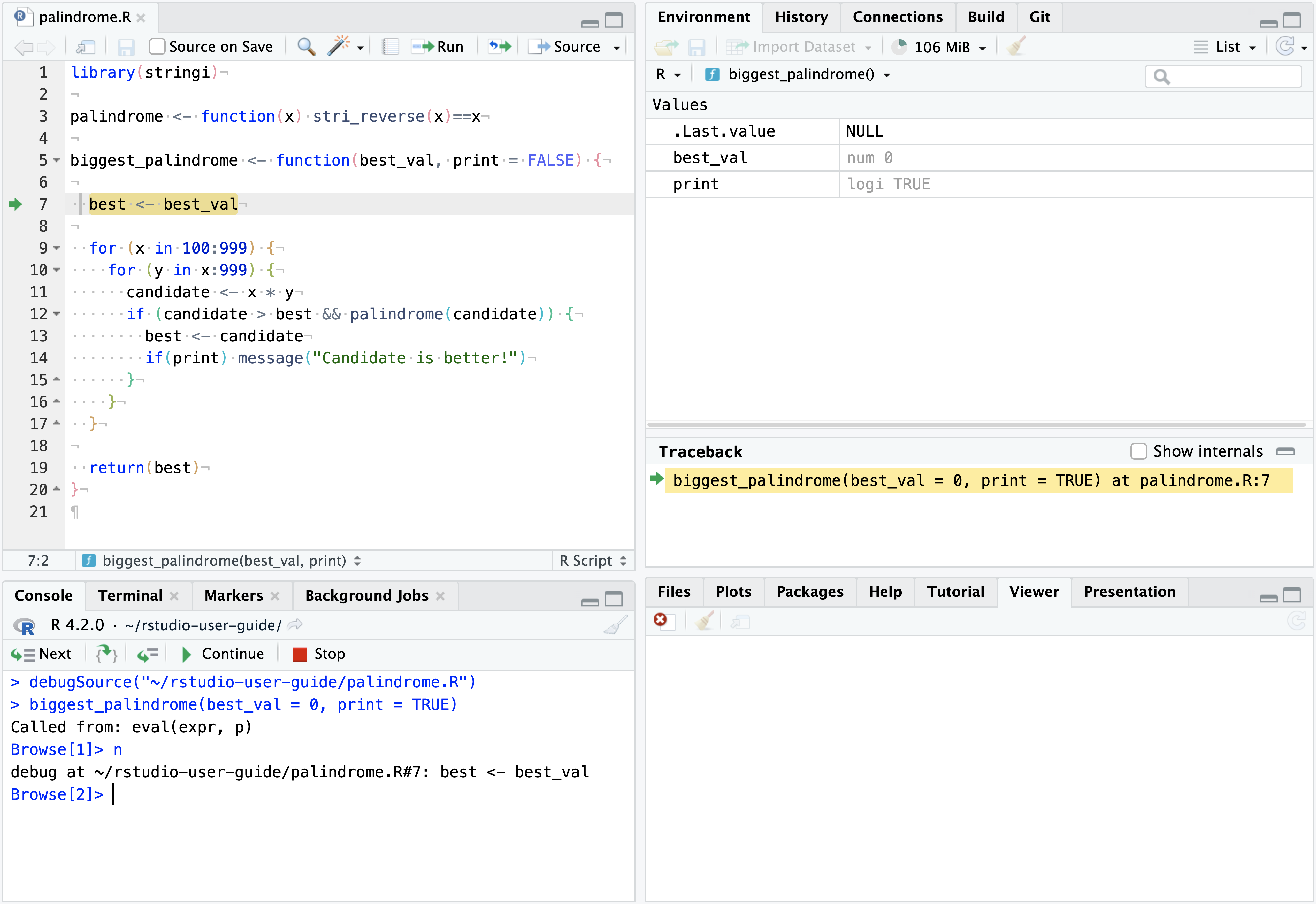 If you are interested in how to debug, please have a look at the RStudio documentation. We hope to offer a Programming Café session on it in the future!