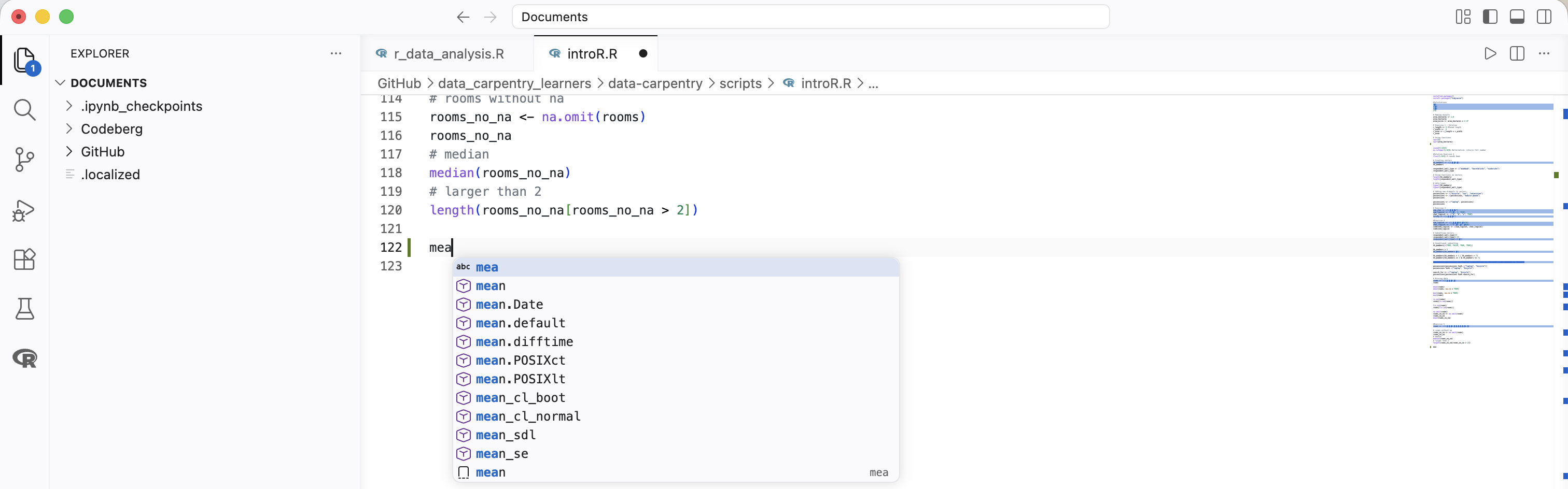 Attention! To run Python or R code, you need to install the Python or R extensions. These extensions give you more language-specific content such as documented here for Python and here for R.