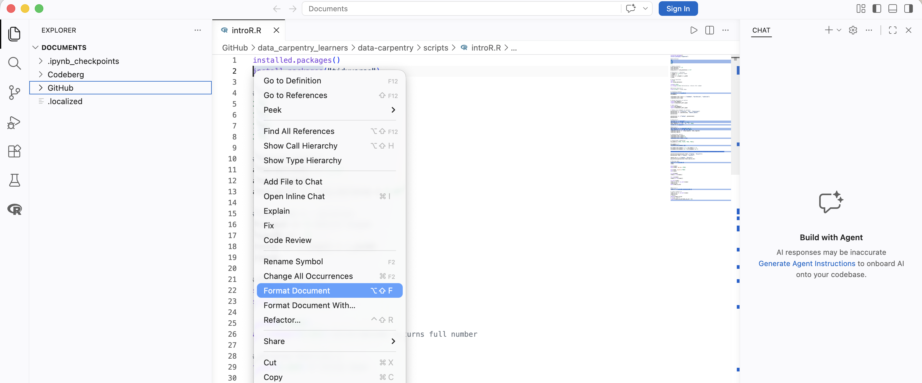 By clicking on Format Document, elements such as indentations, whitespaces, and empty lines will be adjusted to follow a unified style.