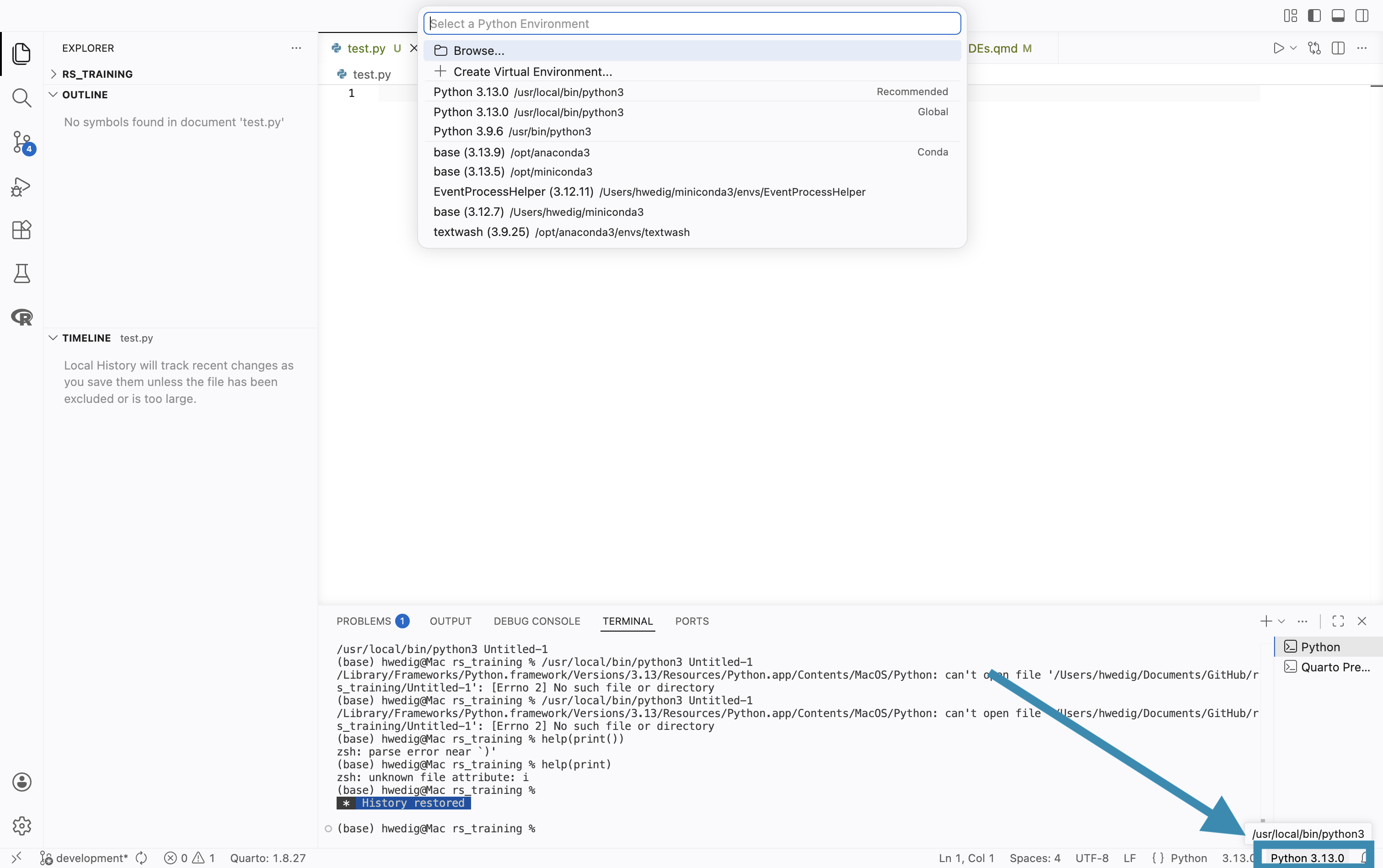 Creating a virtual environment with VS Code